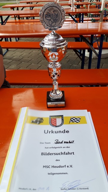Unser Team das „Badmobil“ hat bei der Bildersuchfahrt beim Motorsportclub Heudorf den dritten Platz erreicht. Glückwunsch