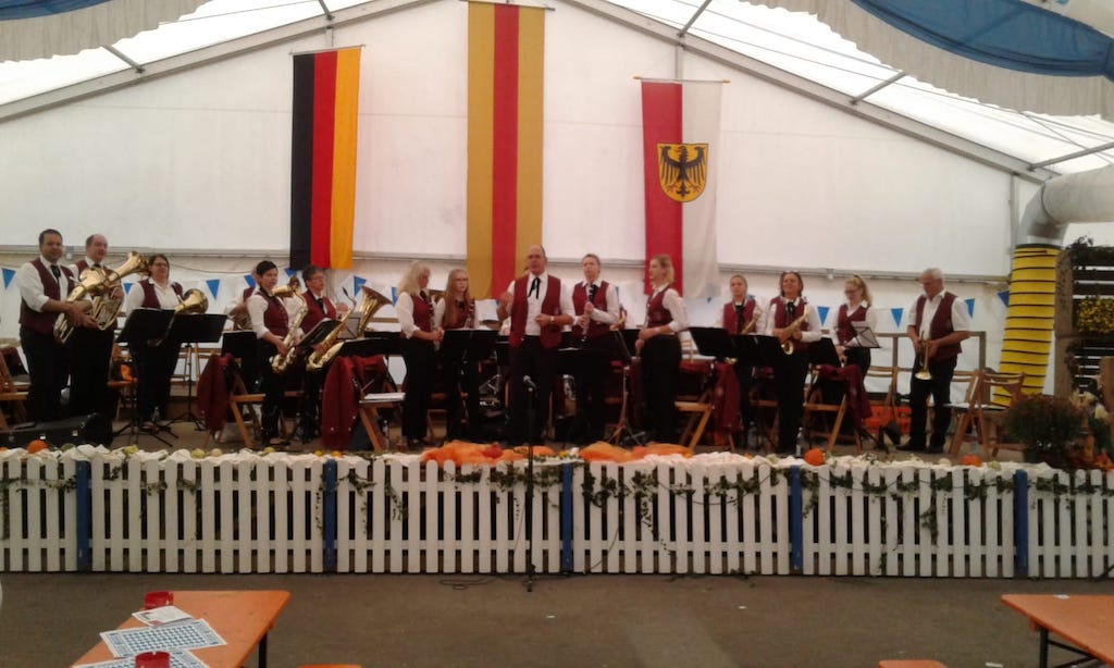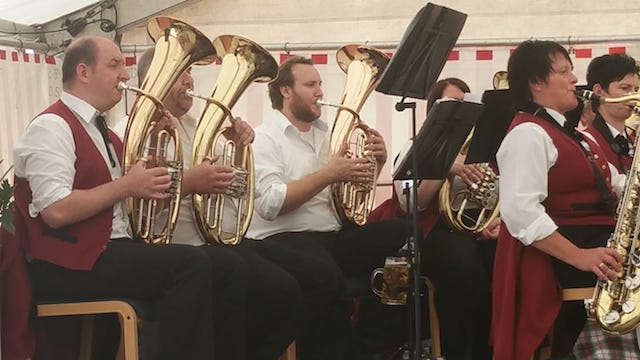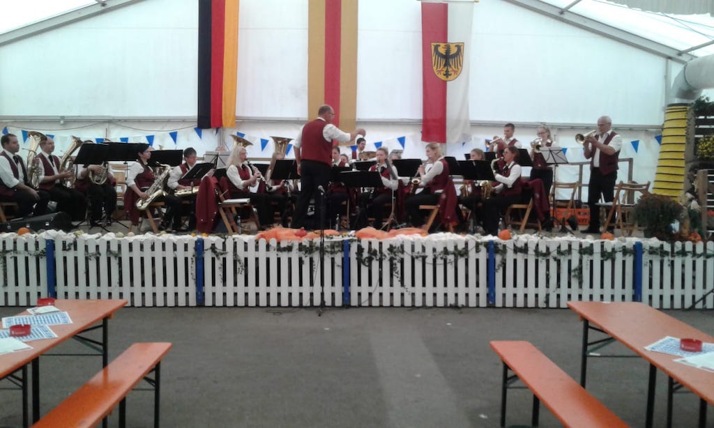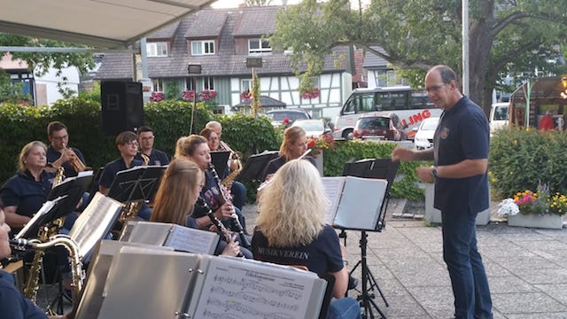 Auch unser Dirigent hatte viel Spass. Gemeinsam konnten wir die Besucher des Festes an diesem Abend für 2 1/2 Stunden unterhalten.